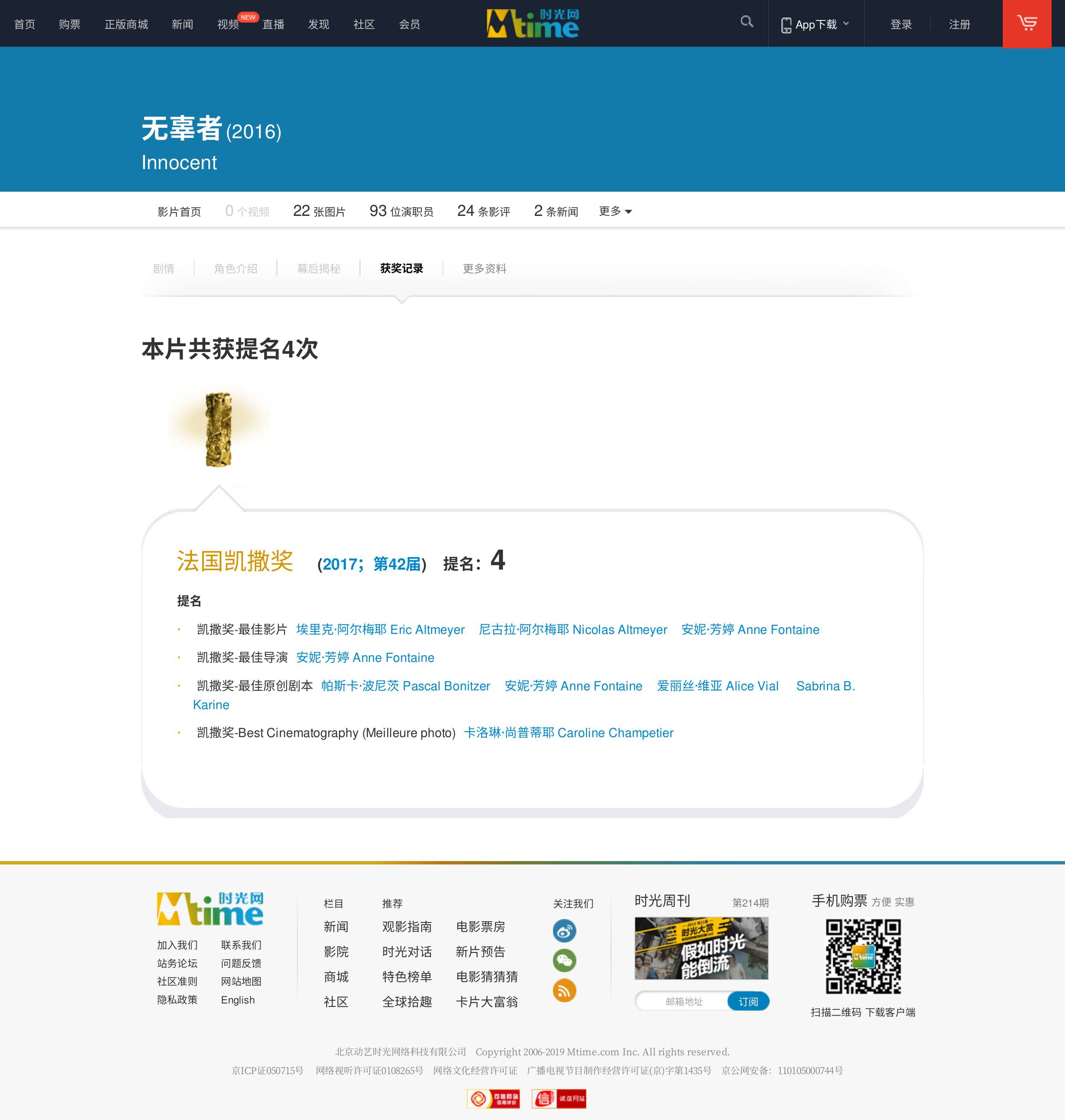 获奖记录.时光网.2021-09-23